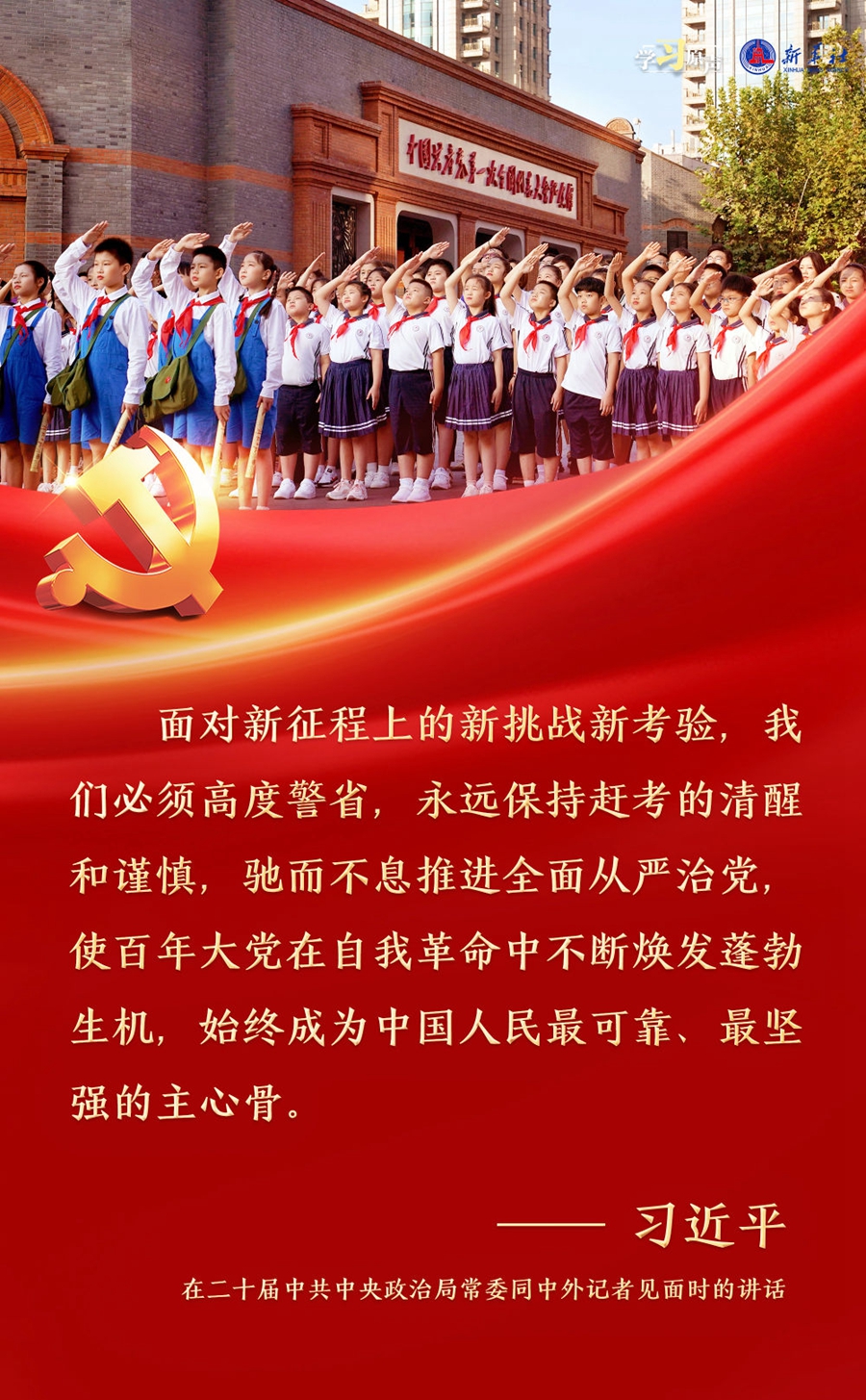 ??習近平總書記強調(diào),面對新征程上的新挑戰(zhàn)新考驗,我們必須高度警省,永遠保持趕考的清醒和謹慎,馳而不息推進全面從嚴治黨,使百年大黨在自我革命中不斷煥發(fā)蓬勃生機,始終成為中國人民最可靠、最堅強的主心骨。