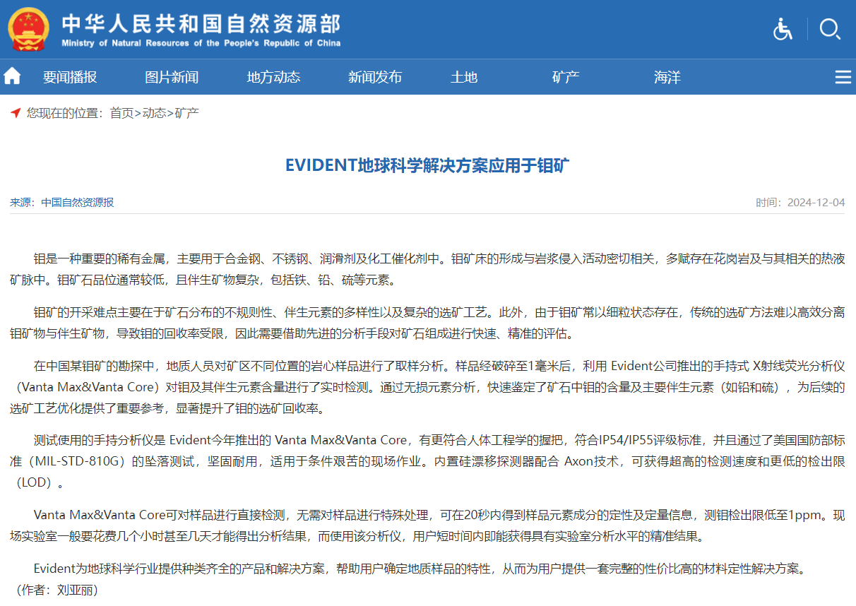 在中國(guó)某鉬礦的勘探中,地質(zhì)人員對(duì)礦區(qū)不同位置的巖心樣品進(jìn)行了取樣分析。樣品經(jīng)破碎至1毫米后,利用 Evident公司推出的手持式 X射線(xiàn)熒光分析儀(Vanta Max&Vanta Core)對(duì)鉬及其伴生元素含量進(jìn)行了實(shí)時(shí)檢測(cè)。通過(guò)無(wú)損元素分析,快速鑒定了礦石中鉬的含量及主要伴生元素(如鉛和硫),為后續(xù)的選礦工藝優(yōu)化提供了重要參考,顯著提升了鉬的選礦回收率。